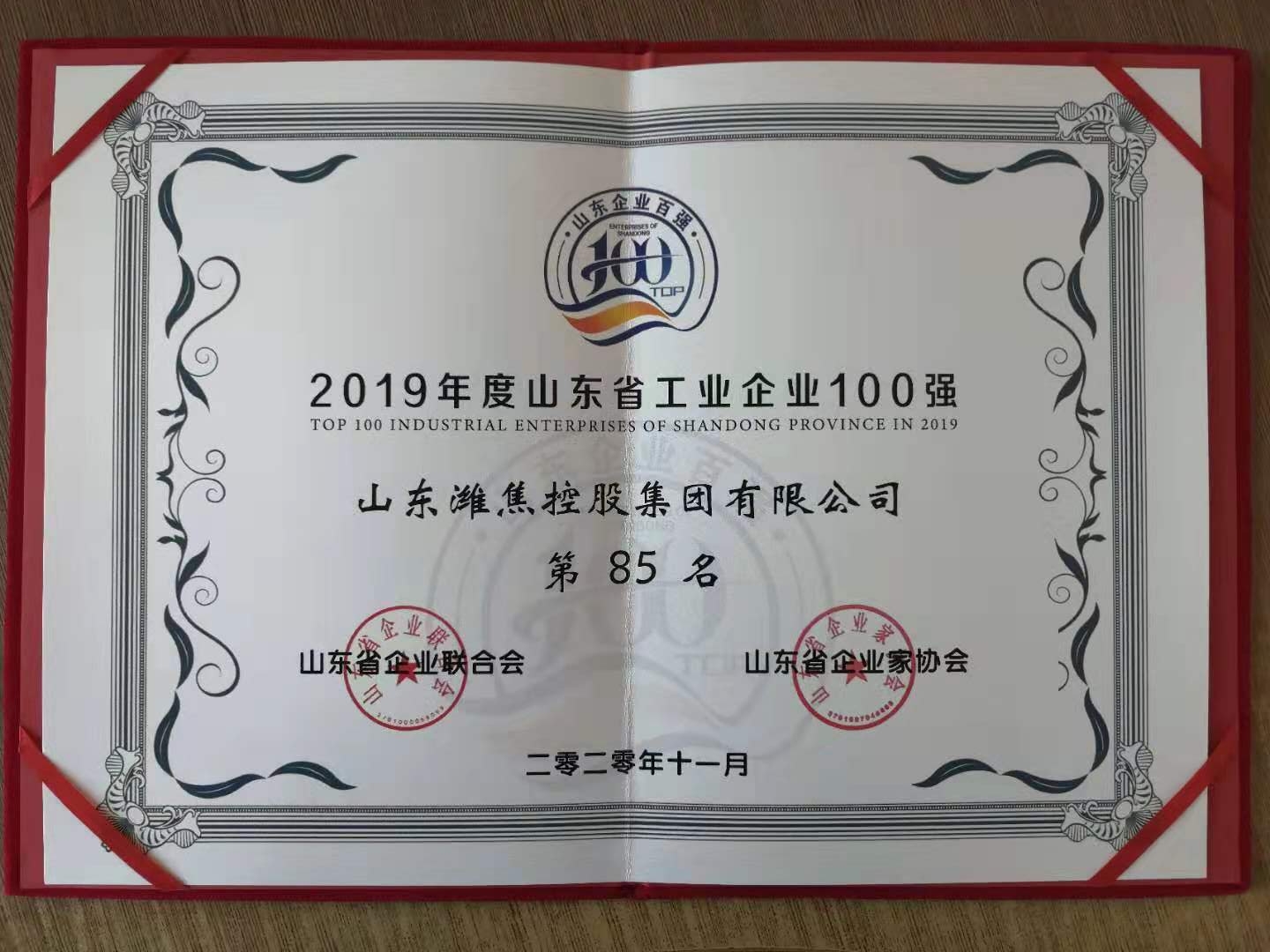 11月11日,山东省工业和信息化厅、山东省企业联合会联合发布了2019年山东省综合百强和工业百强名单,球友会体育荣登山东省工业百强企业榜单,位列第85位。