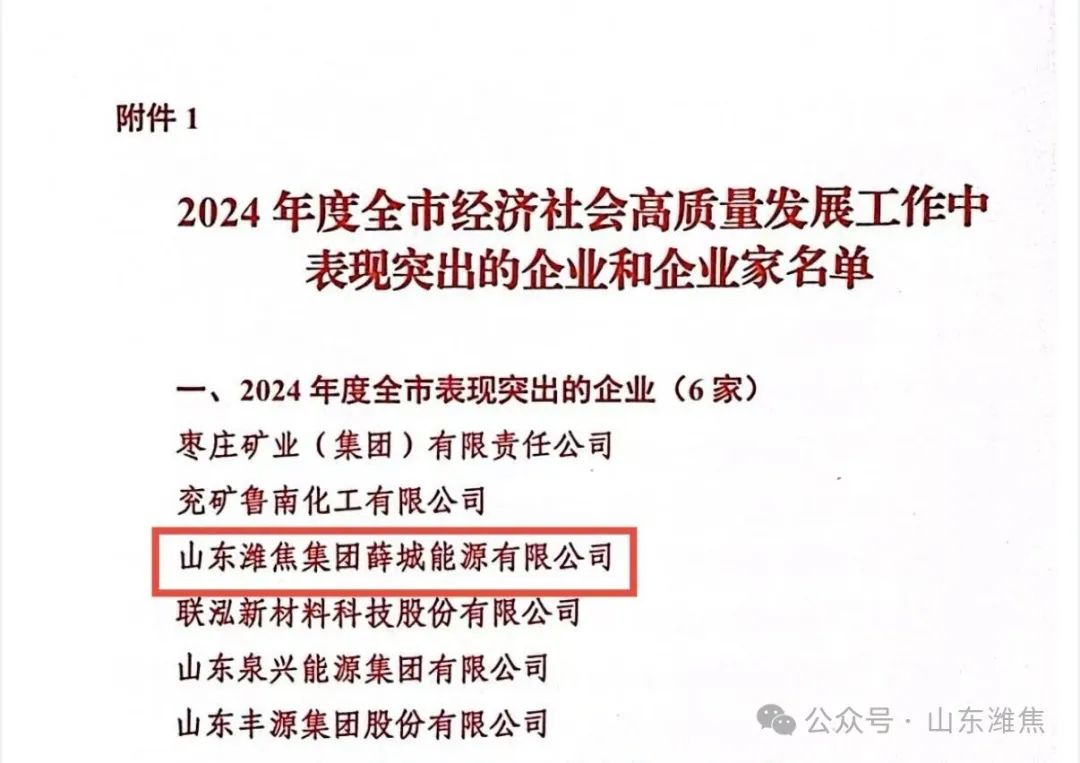 4月9日上午,枣庄市委、市政府召开2024年度高质量发展综合绩效考核总结大会,薛城能源公司荣获“高质量发展工作突出企业”荣誉称号。